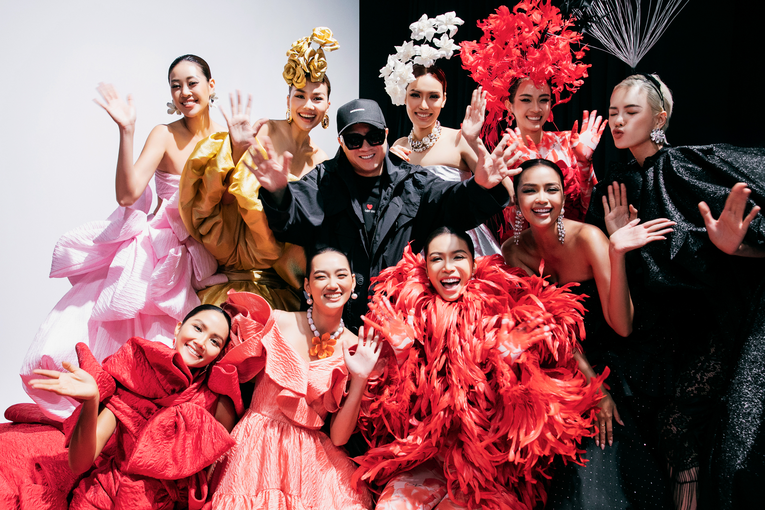 Hoa hậu H’Hen Niê là first face mở màn show diễn. Cô mặc bộ cánh ấn tượng ghép từ áo hoa hồng vải 3D và chân váy tua rua. Người đẹp sau đó trở lại sàn diễn với một mẫu đầm đỏ đính nơ cầu kỳ gần cuối show.