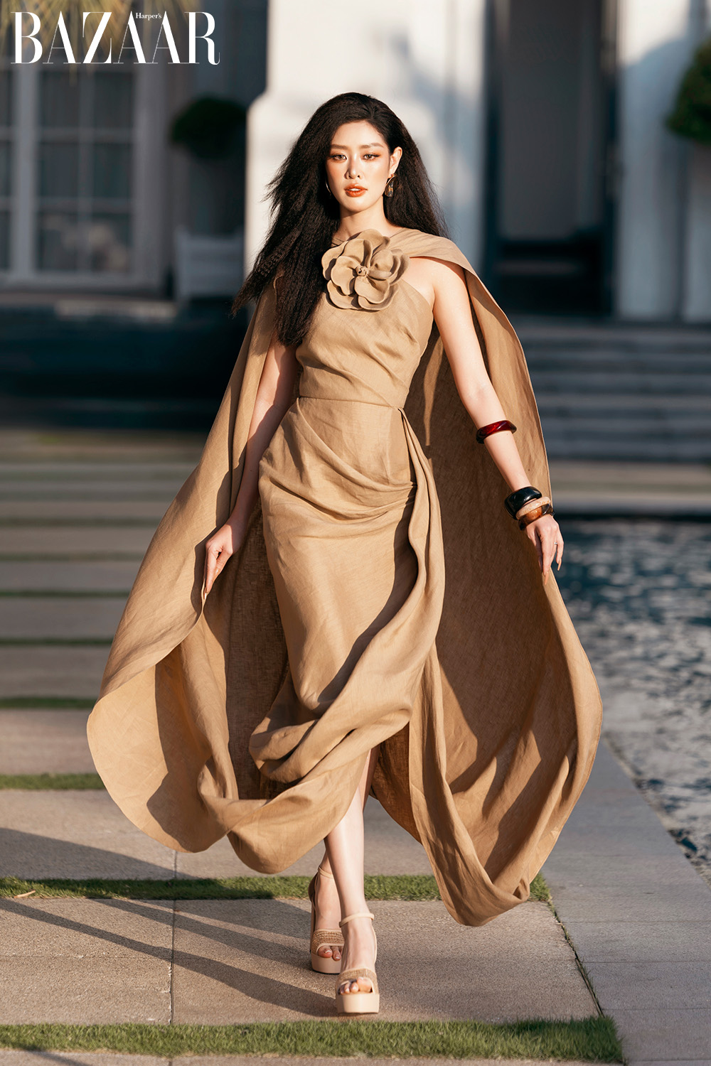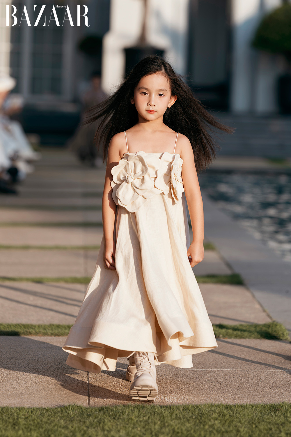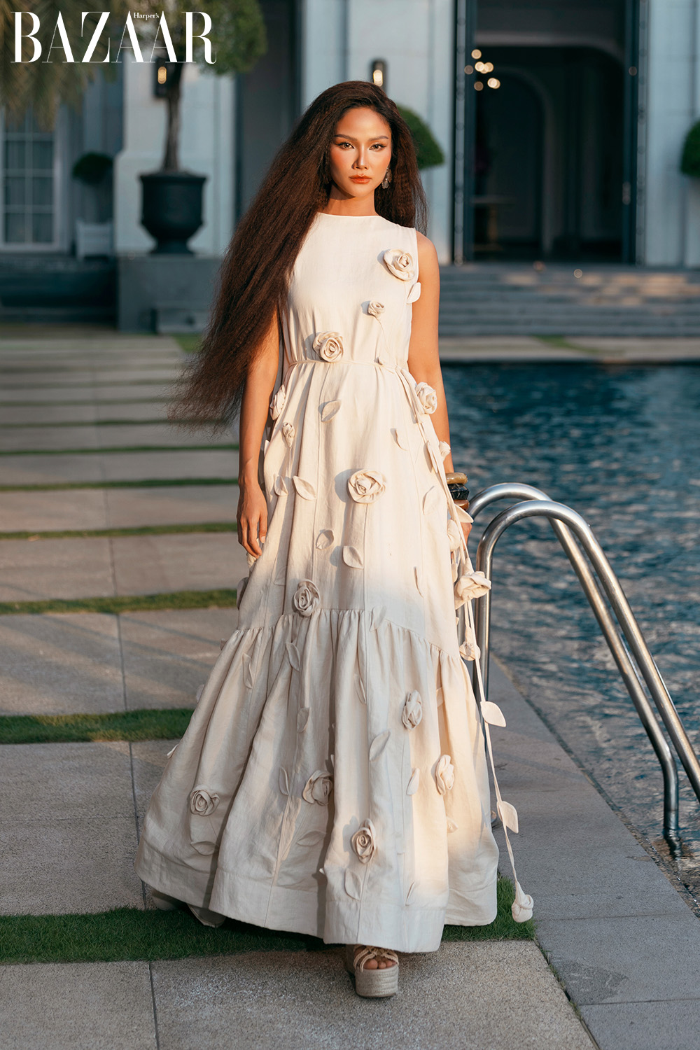 Bộ sưu tập cũng có rất nhiều dáng váy rộng giấu đường cong, váy maxi – những loại trang phục vốn dĩ được yêu thích trong mùa hè. Nhà thiết kế họ Đỗ tạo điểm nhấn cho chúng bằng những chi tiết hoa với đầy đủ kích cỡ. Có khi đó là những bông hoa cỡ đại ấn tượng, nhưng cũng có thể là sự kết nối của những bông hoa nhỏ xinh đủ để tạo nên sự thu hút.