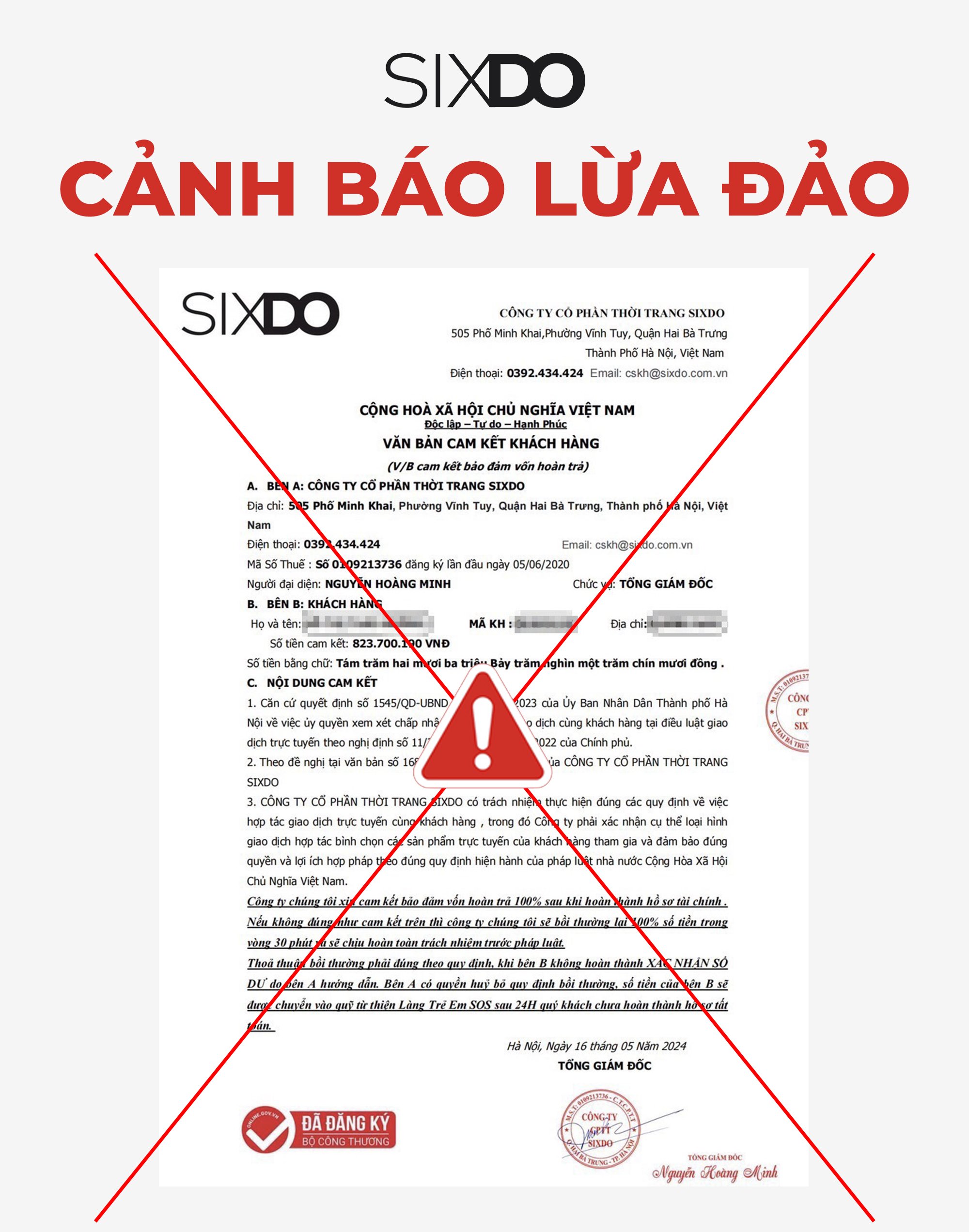 Thương hiệu thời trang SIXDO by DO MANH CUONG cảnh báo quý khách hàng với mọi bẫy lừa đảo mạo danh SIXDO để chiếm đoạt tài sản!