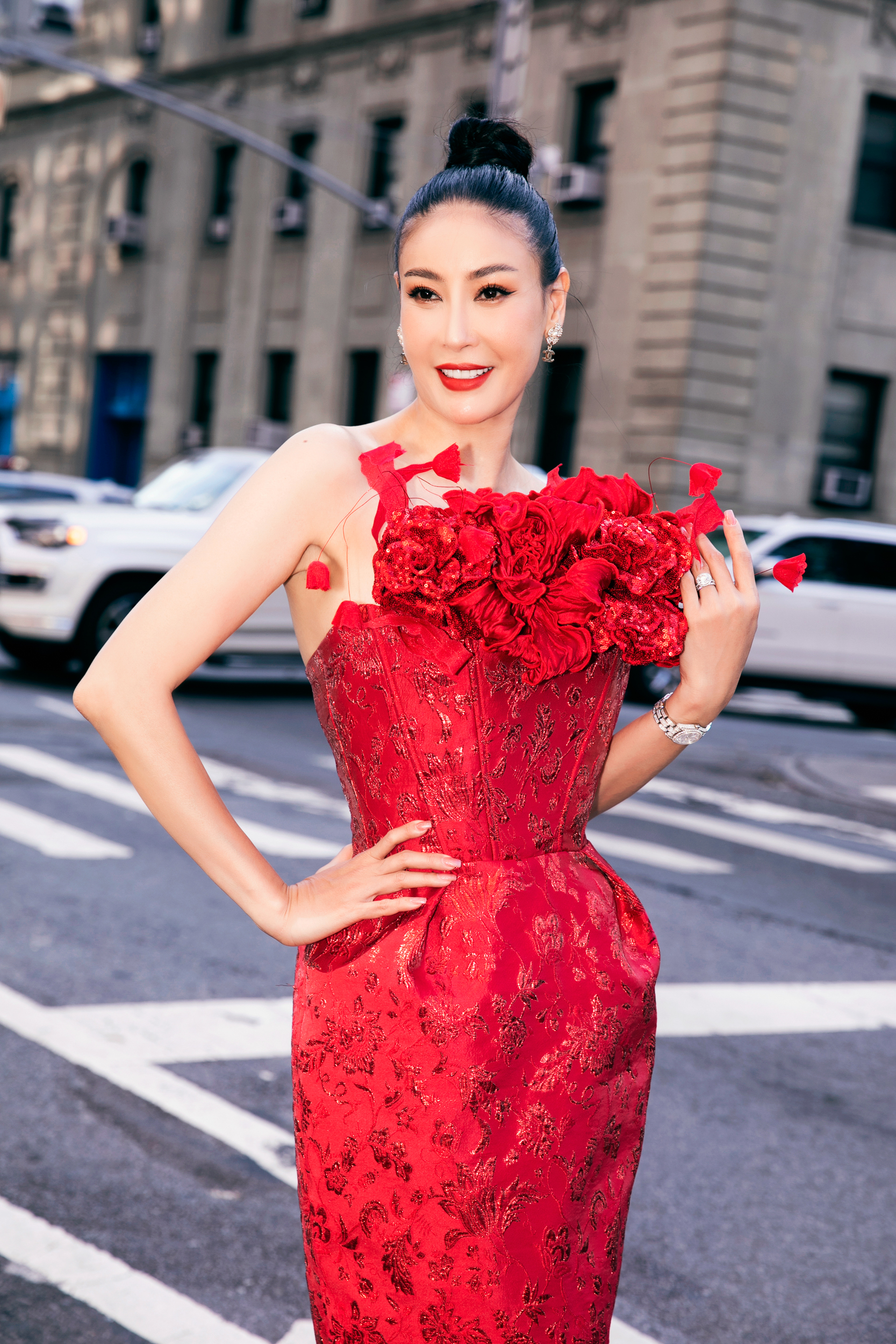 Dàn sao mặc trang phục đỏ rực tham dự show diễn của Đỗ Mạnh Cường tại Tuần lễ Thời trang New York Xuân - Hè 2024