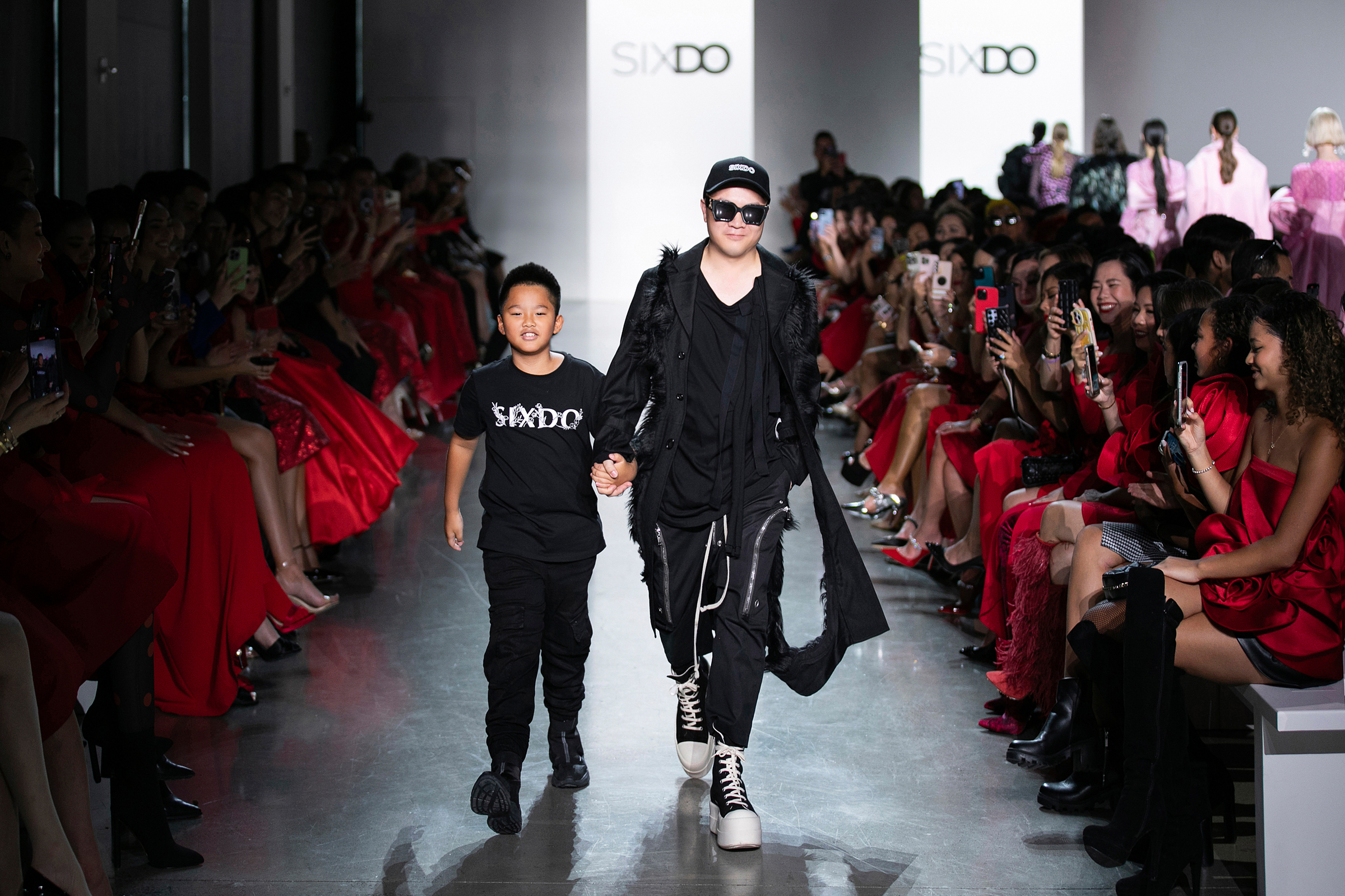 Đỗ Mạnh Cường và bé Nhím trên sàn diễn Tuần lễ thời trang New York Xuân Hè 2024 hồi tháng 9/2023.