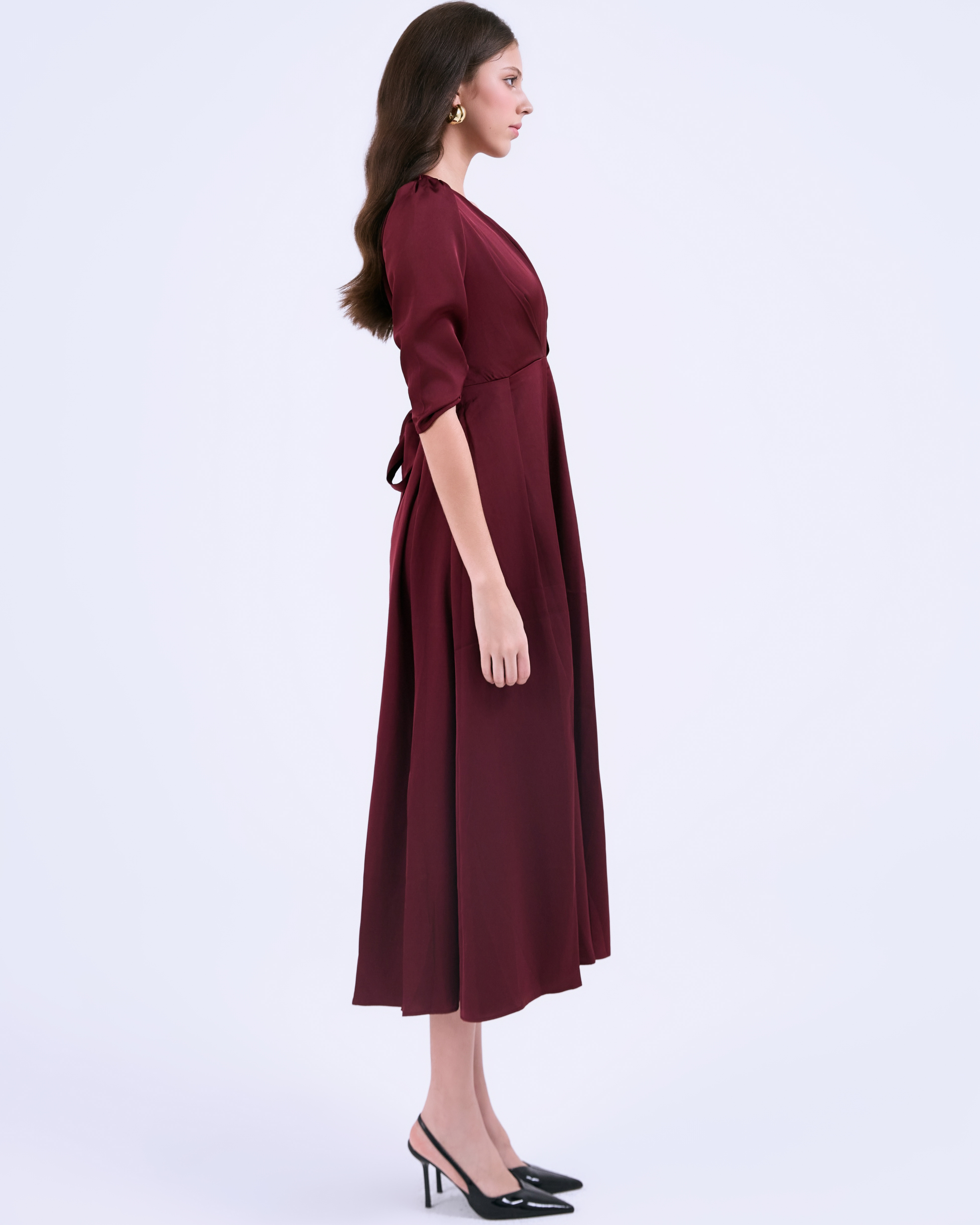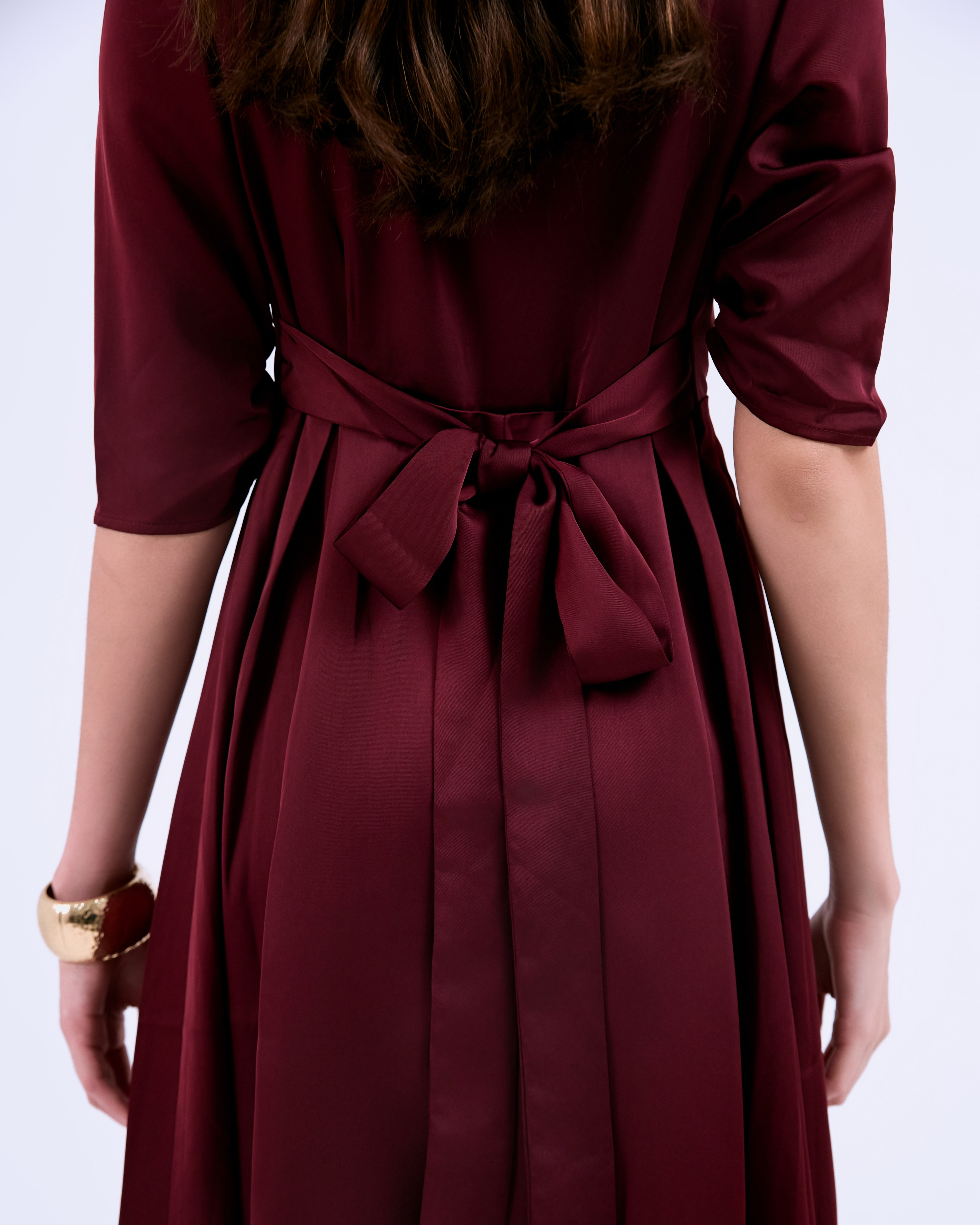 G-Dark Red Silk Flared Dress