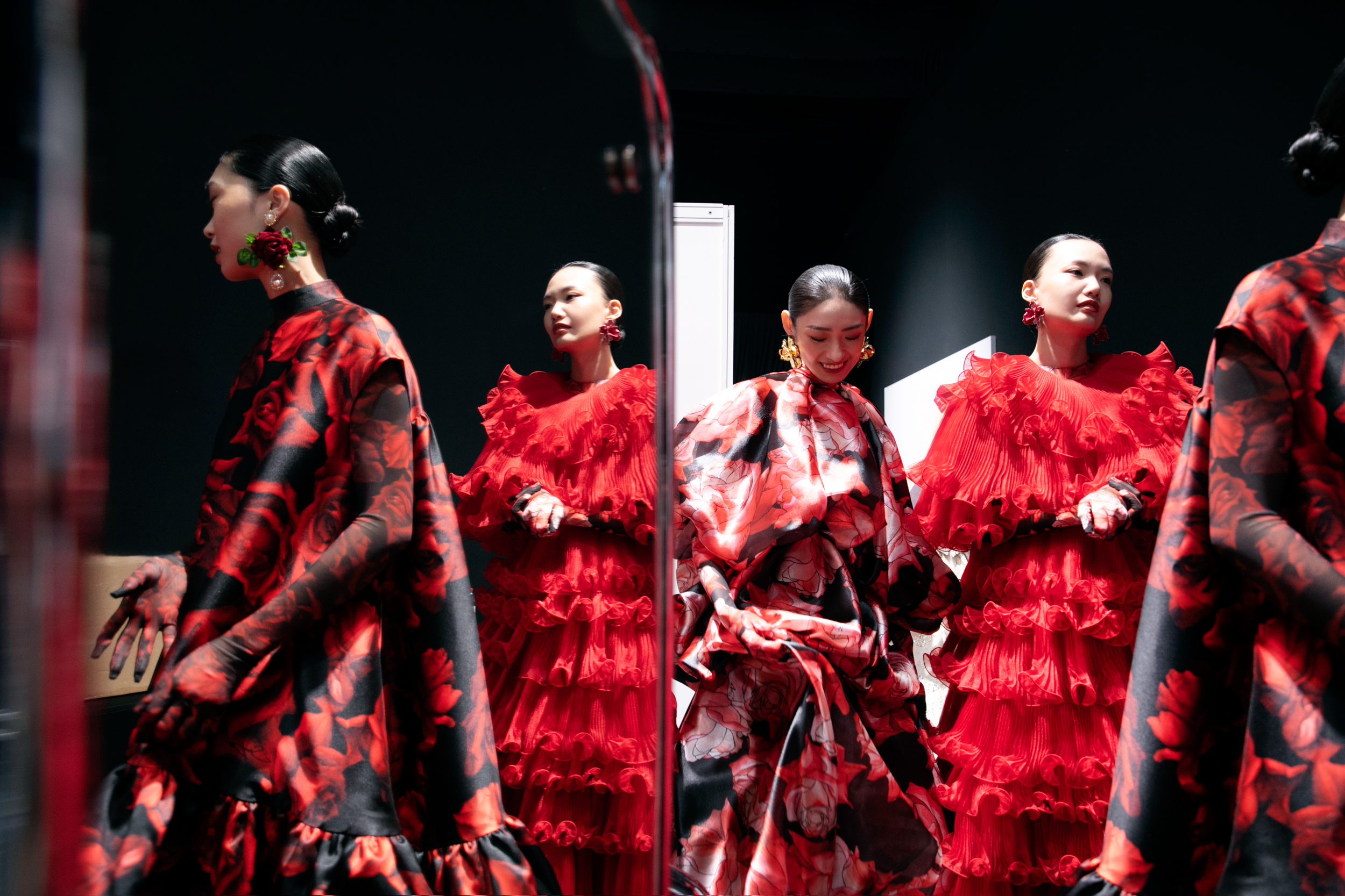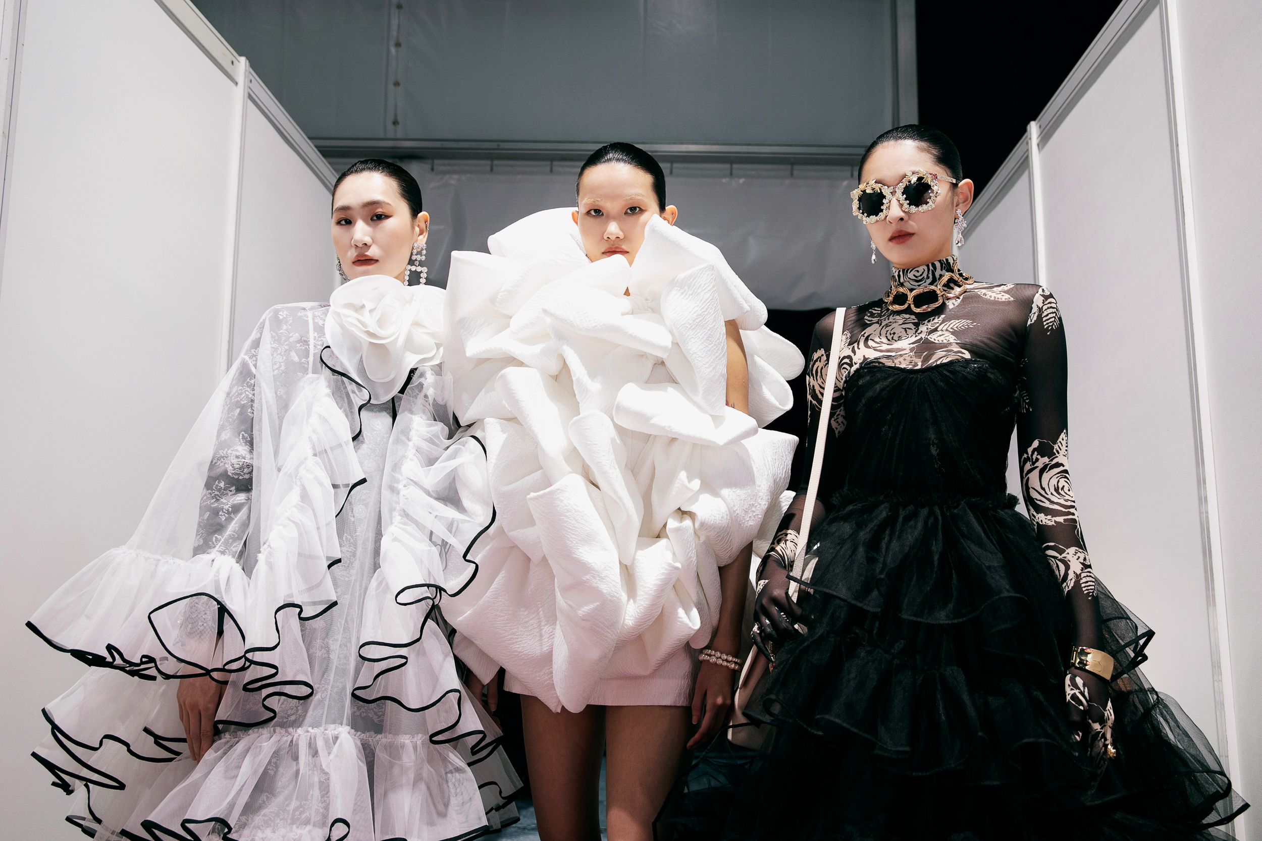 NTK phát triển nhiều thế mạnh của anh trong BST này như: kỹ thuật dựng phom 3D, trang phục bất đối xứng, trang phục hoa 3D, thiết kế