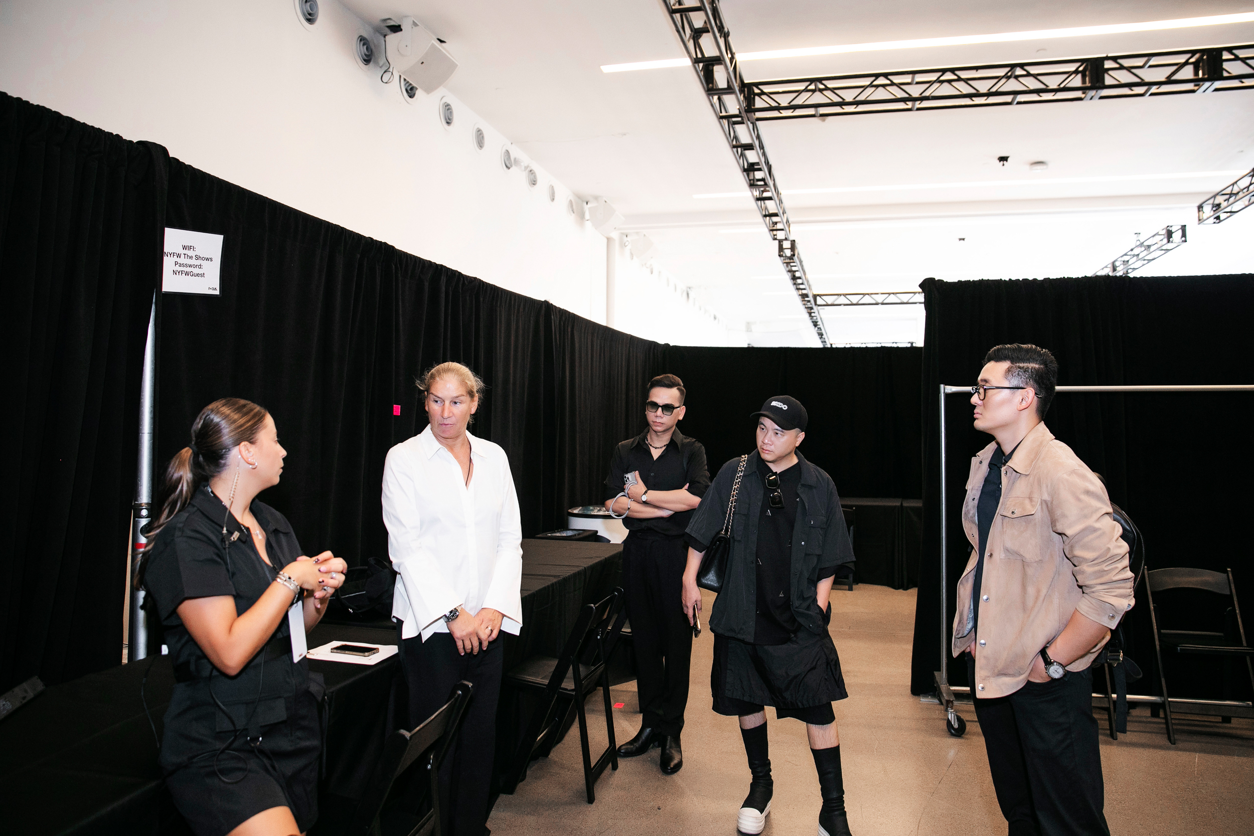 Theo quy định, đến sáng ngày 10/9 (theo giờ Mỹ), phía NTK Đỗ Mạnh Cường mới bắt đầu được mang trang phục, phụ kiện… vào địa điểm trình diễn. Ê-kíp được sử dụng nơi này trong khoảng 6 tiếng, cho đến khi hoàn thành show.
