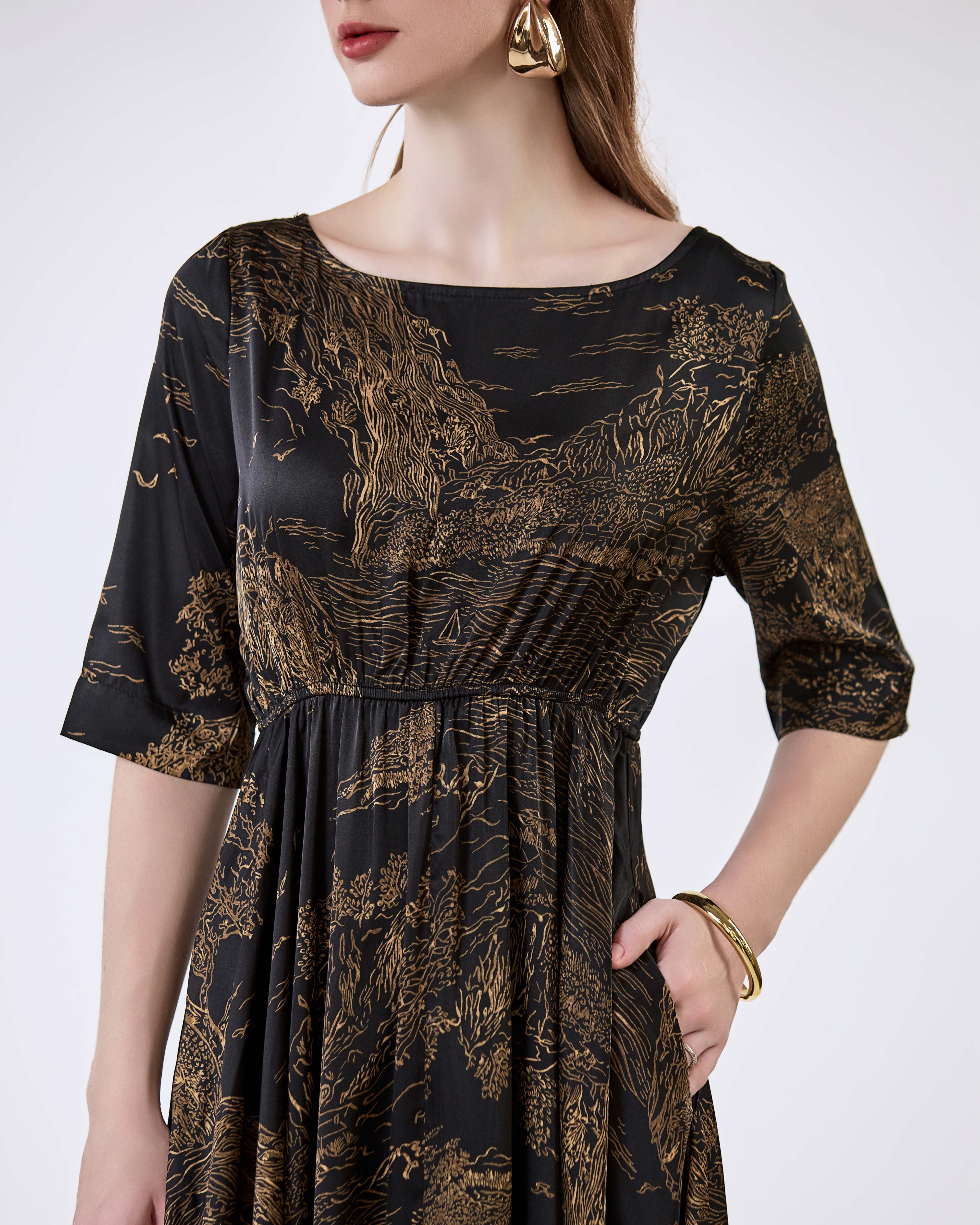 SIXDO G-Black Wide Neck Woven Flared Dress