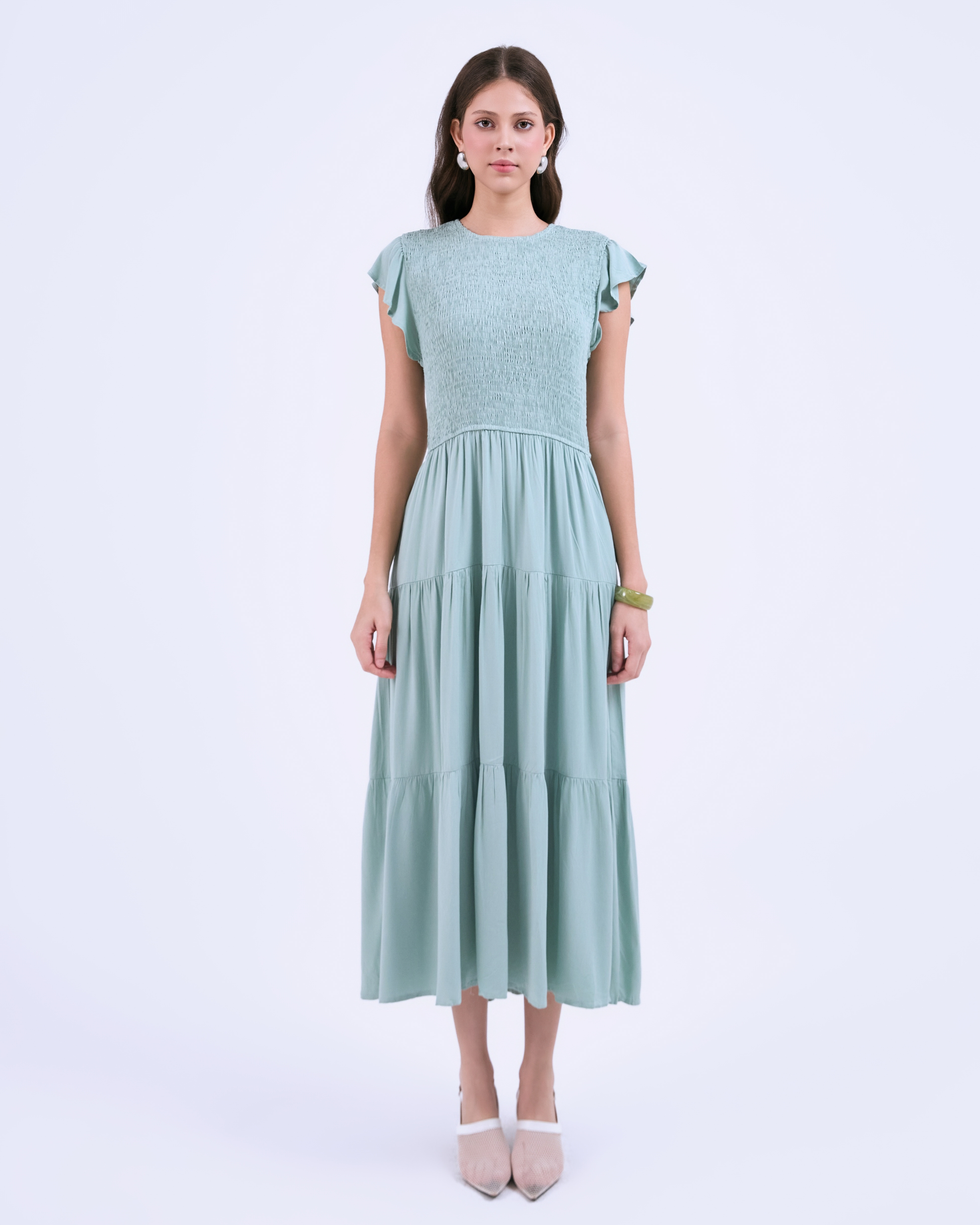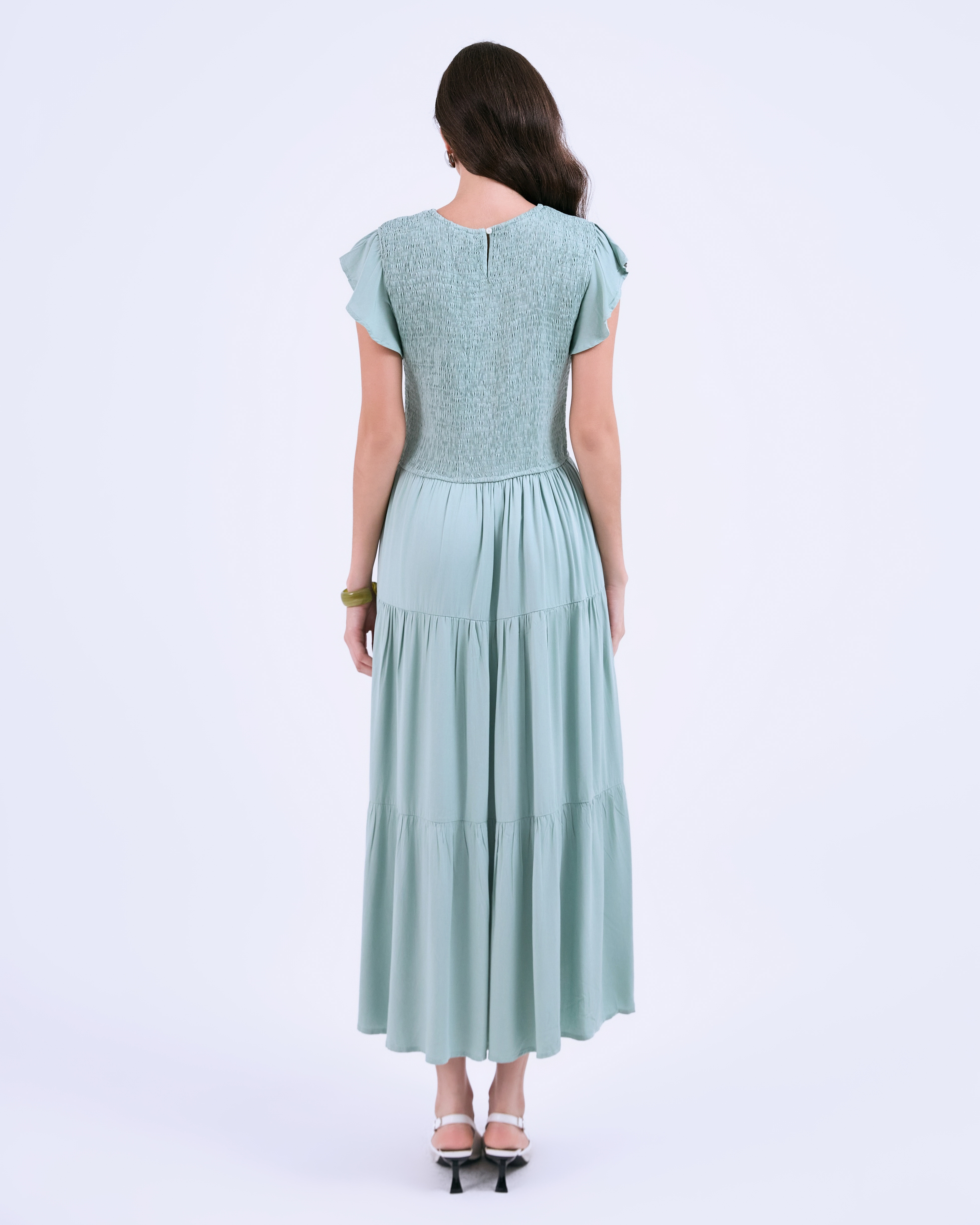 SIXDO G-Green Butterfly Sleeves Woven Flared Dress