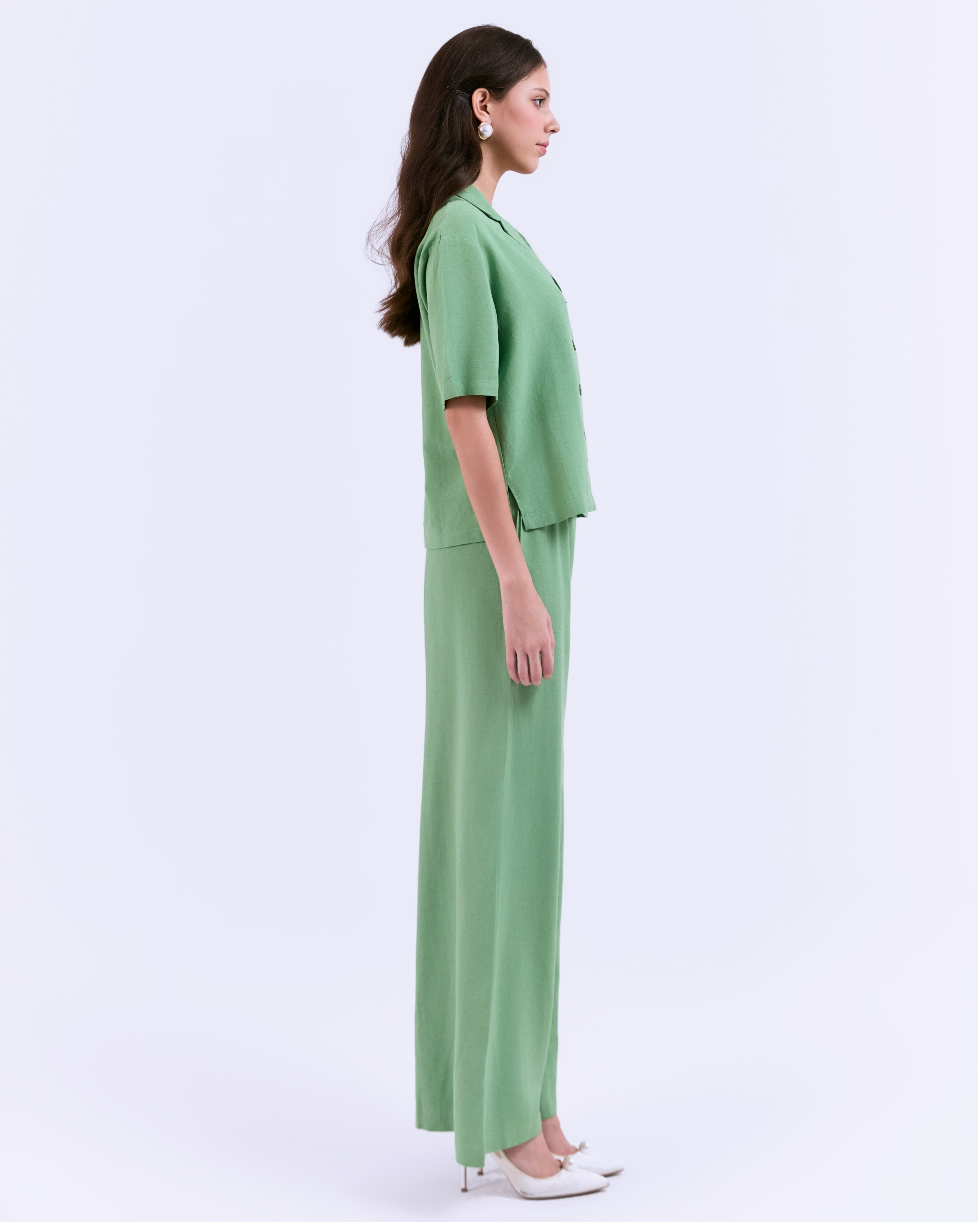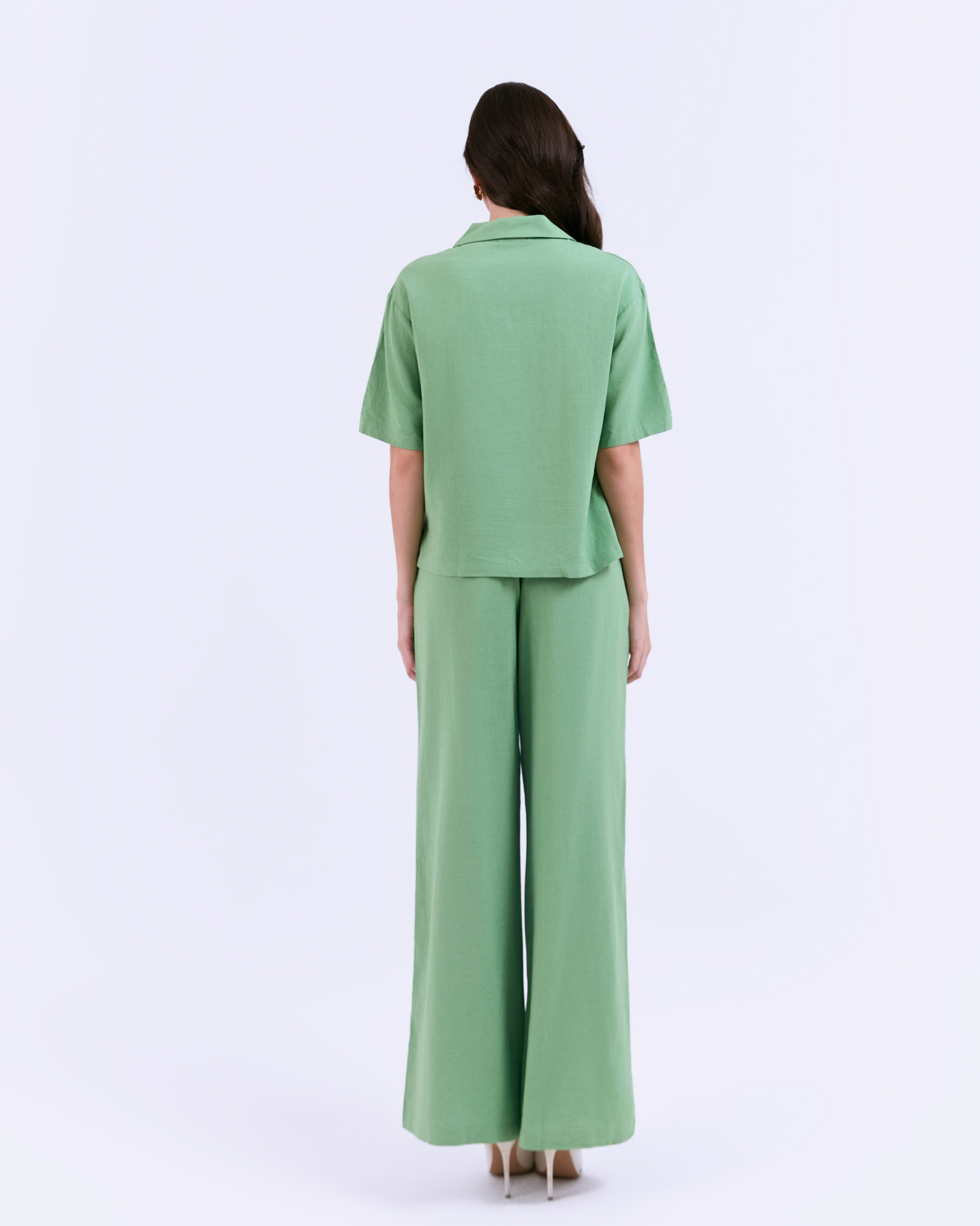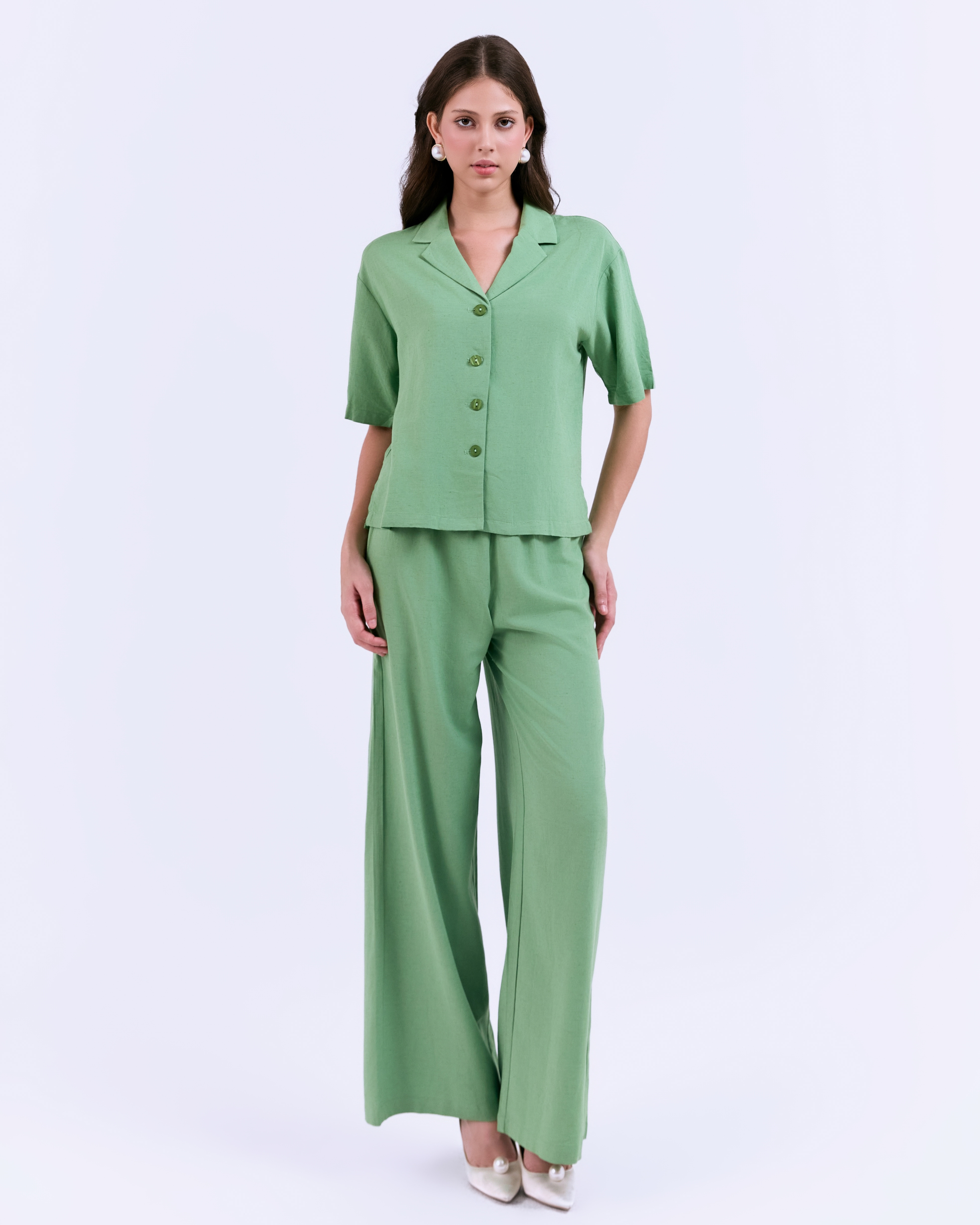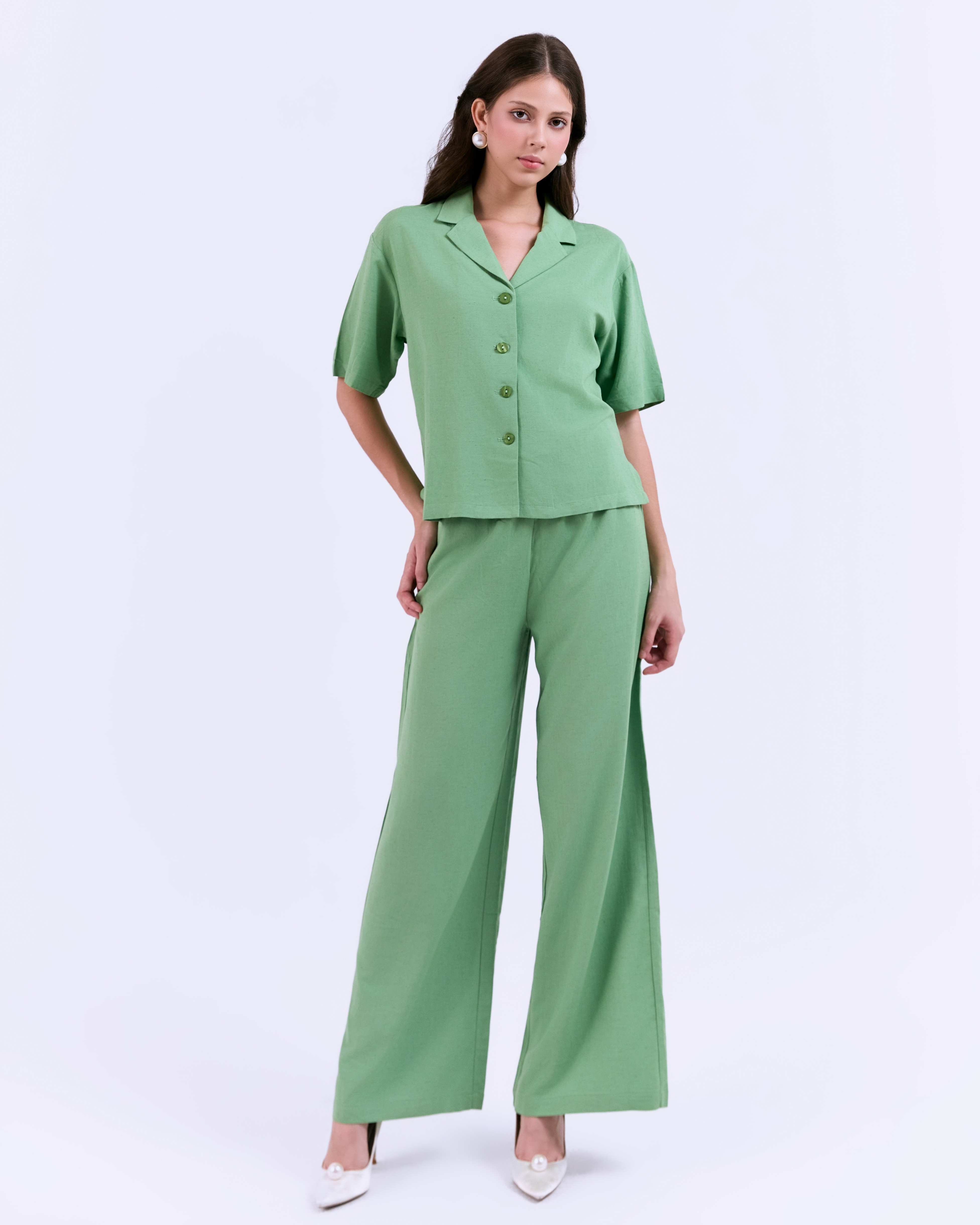 SIXDO G-Green Lapel Collar Woven Jumpsuit