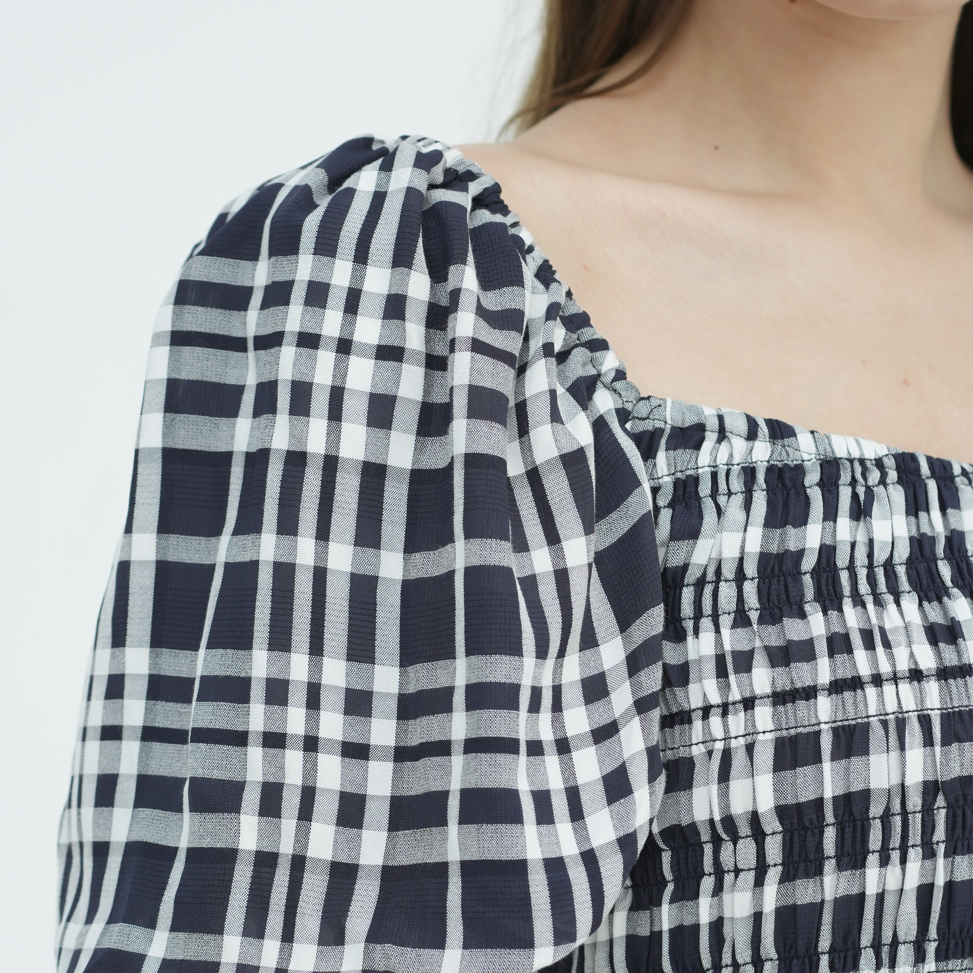 SIXDO G-Navy Short Sleeves Woven Flared Dress for Women
