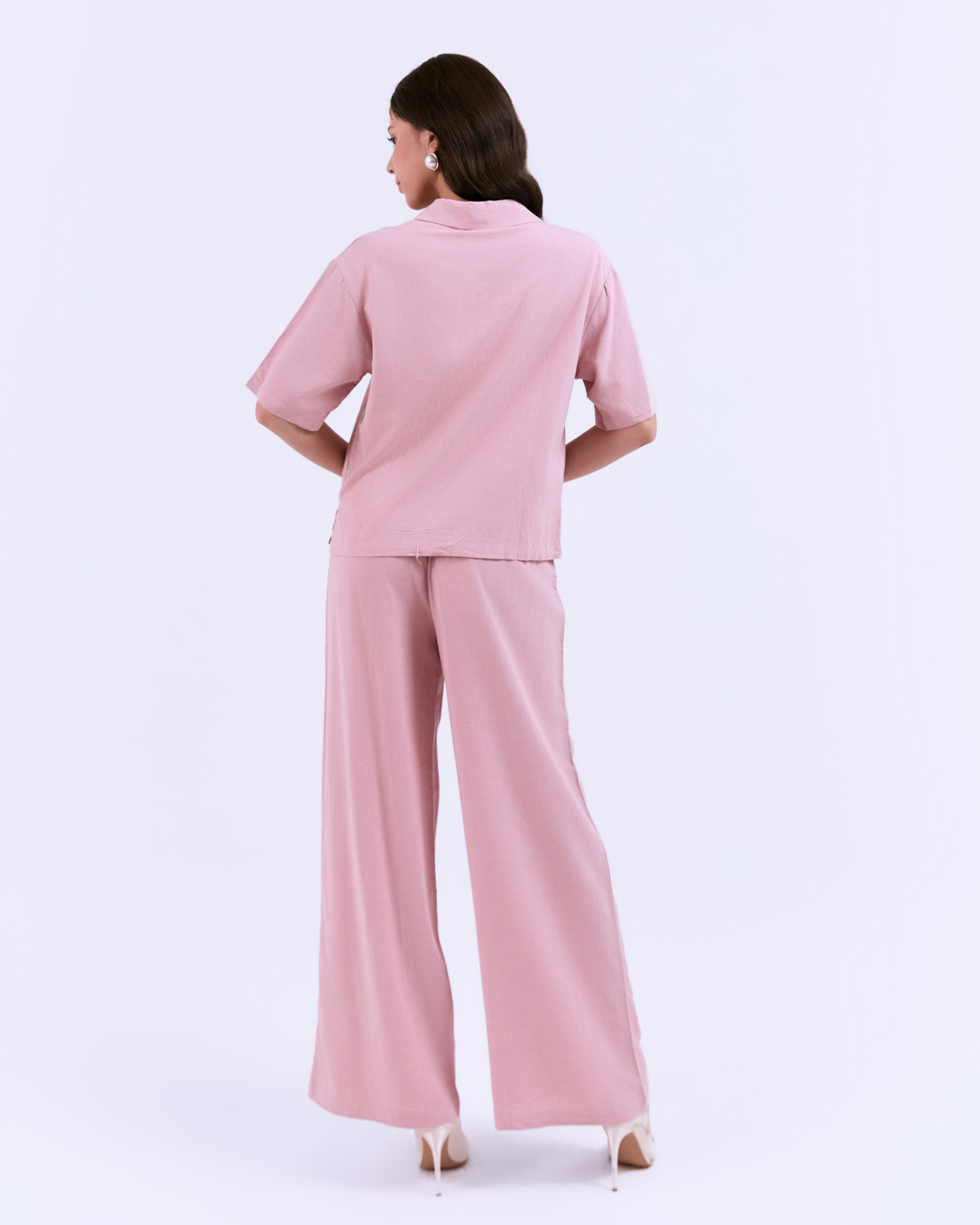 SIXDO G-Pink Lapel Collar Woven Jumpsuit