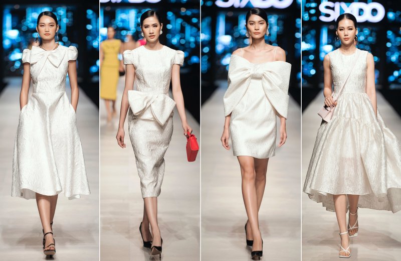 Kỹ thuật draping – tạo hình các thiết kế bằng việc xếp vải – cũng được NTK Đỗ Mạnh Cường ứng dụng trên các bộ trang phục của thương hiệu SIXDO. Motif những bông hoa, nơ bướm được tạo hình bằng kỹ thuật draping ngay lập tức thu hút được sự quan tâm của những vị khách mời có mặt tại show diễn.