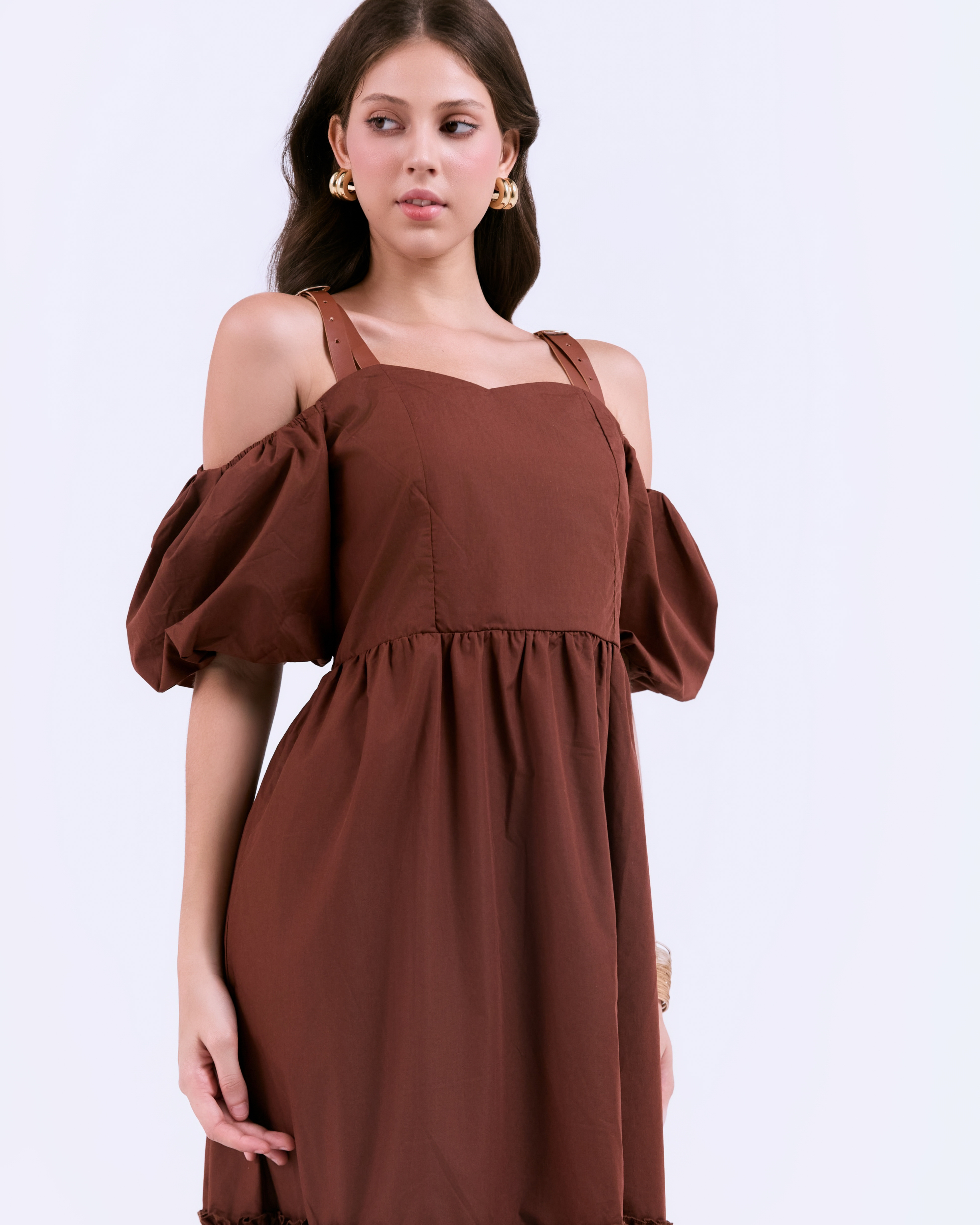 SIXDO G-Coffee Brown Woven Flared Dress