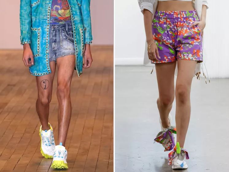 We love an "ugly shoe," especially one that pokes a bit of fun at itself with playful colors and whimsical laces. The normcore adjacent chunky sneakers at Colin LoCascio and Flying Solo balanced streetwear style with a cheerful summer color palette thanks to ribbon laces, contrasting soles, and neon accents.