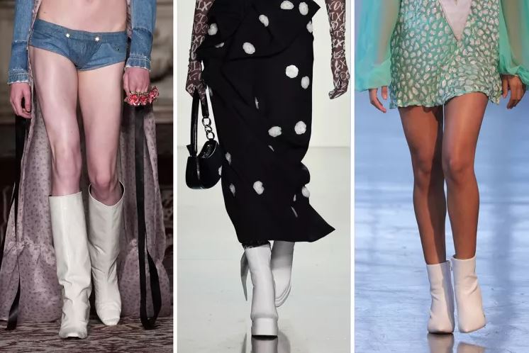 White boots aren't easy to keep clean, but they do play nicely with a range of outfits, from short-shorts to pencil skirts, as several designers demonstrated. The white boots of next spring and summer hover between ankle and knee-height and feature a boxy silhouette.