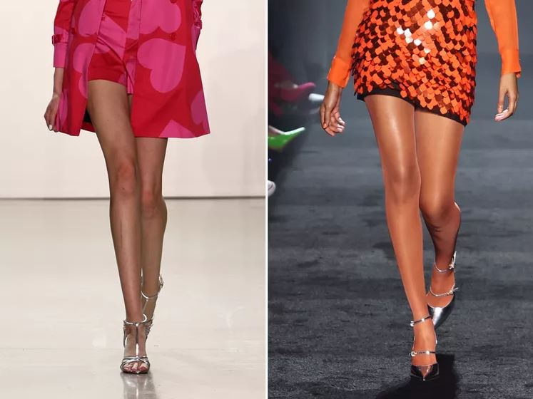Delicate and strappy silver pumps and high-heeled sandals made frequent appearances on this season's runways. At Libertine, the trend took a slinky and summery approach, while Sergio Hudson went for a pointy-toe, multi-strap silhouette.