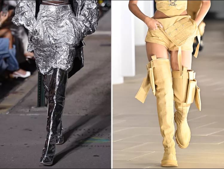 Thigh-high boots continued their stylish and slouchy evolution on the LaPointe and Dion Lee runways. Rather than clinging from thigh to calf, these boots featured a slouchier silhouette that offered wiggle room throughout.