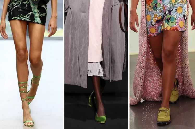 One of summer's celebrity favorite shades made a NYFW appearance. At Bishme Cromartie and Altuzarra, vintage chartreuse appeared as shiny leather sandals and satin flats. Meanwhile, at Melke, the bright color was softened by a suede finish on chunky loafers.